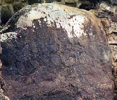 After she had found and photographed the curious boulder with its apparent depiction of the Sinclair coat-of-arms, "Elizabeth" called me in Toronto and we arranged to meet. When we got together on July 28, 2000, my wife, Joelle Lauriol, noticed what she thought was another illustration opposite the coat-of-arms on the boulder. Apparently carved, these features seemed to be a fairly accurate map of the North American Atlantic coast from Yucatan to Nova Scotia (although the “northeastern” coast was progressively obscured by a growth of lichen on the photos of the boulder).